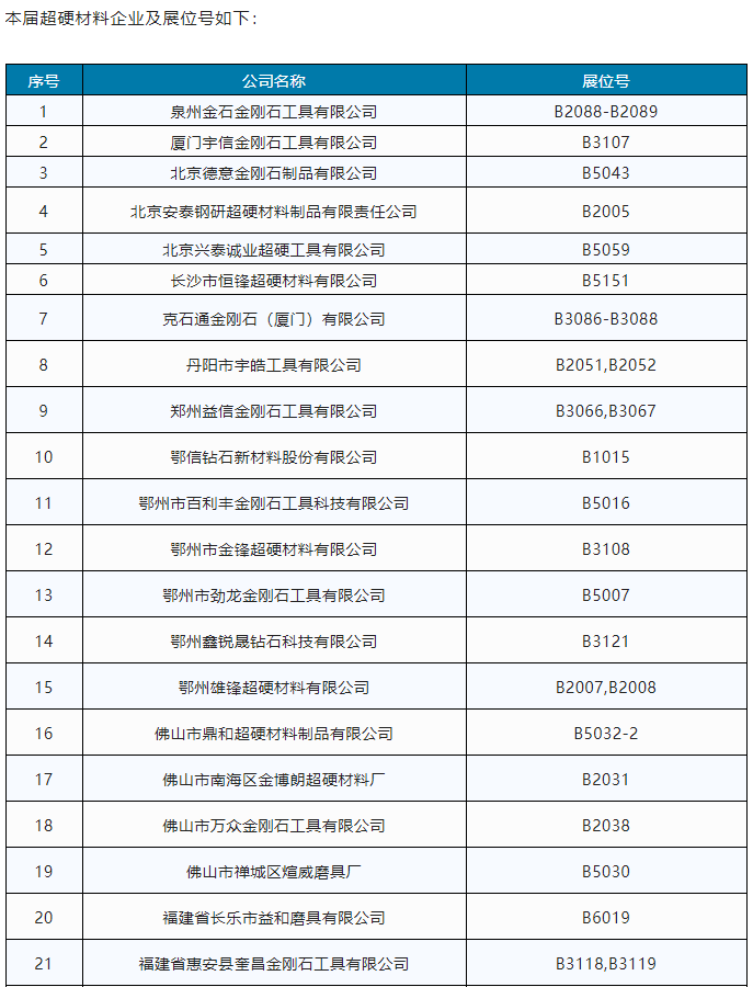 据中国超硬材料网不完全统计, 今年,来自全国各地的120多家超硬材料企业携金刚石锯片、绳锯、磨轮、砂轮、磨盘、磨片、刀头、金刚石单晶、破碎料、微粉、预合金粉、生产设备等产品亮相本届厦门石材展。