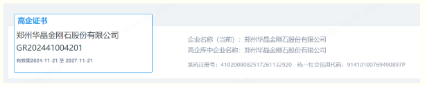 近日,全国高新技术企业认定管理工作领导小组办公室公布了《对河南省认定机构2024年认定报备的高新技术企业进行第二批补充备案的公告》 ,郑州华晶金刚石股份有限公司成功通过高新技术企业认定审核,再次荣获国家高新技术企业资质。